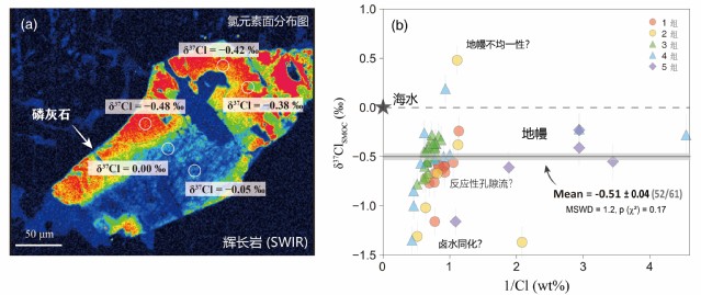 Abstract: The extent of chlorine isotope heterogeneity within Earth’s mantle remains a subject of active debate. To contribute to this discussion, we present the first in situ chlorine isotope measurements of apatite from Integrated Ocean Drilling Program Hole U1473A (Southwest Indian Ridge) gabbros. The apatites record a pristine mantle δ37Cl value of -0.51‰ ± 0.04‰, consistent with global mid-ocean ridge basalt averages. Systematic negative covariations between δ37Cl and Cl content across lithological boundaries cannot be explained by fractional crystallization alone. Compared to altered gabbros from Ocean Drilling Program Hole 735B (Atlantis Bank), apatites from U1473A show lower δ37Cl values. The preservation of euhedral textures and constant OH concentrations in these apatites, combined with amphibole geochemistry, rules out lower-temperature seawater alteration. Instead, these trends reflect high-temperature processes, including melt-rock interaction, brine assimilation, or mantle heterogeneity. Our findings demonstrate that δ37Cl variability in mantle-derived apatites records both crustal recycling and intrinsic mantle heterogeneity, confirming their utility as reliable tracers of deep Earth volatile cycling.